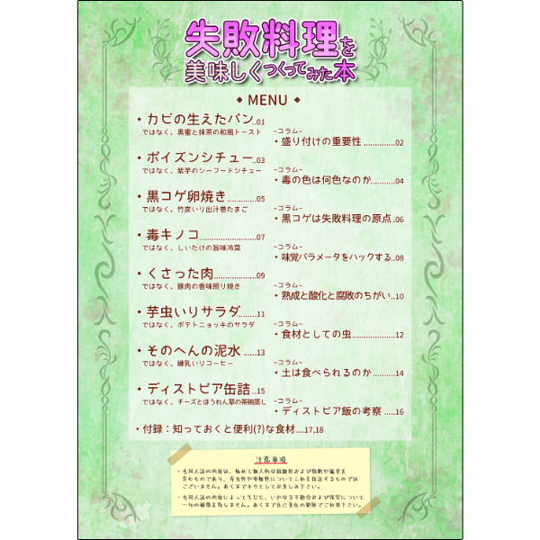 視覚と味覚のギャップに脳がバグる(?) 「変わったモノ」が食べたい貴方へ贈る、 異形の料理レシピ&考察をまとめた同人誌!!